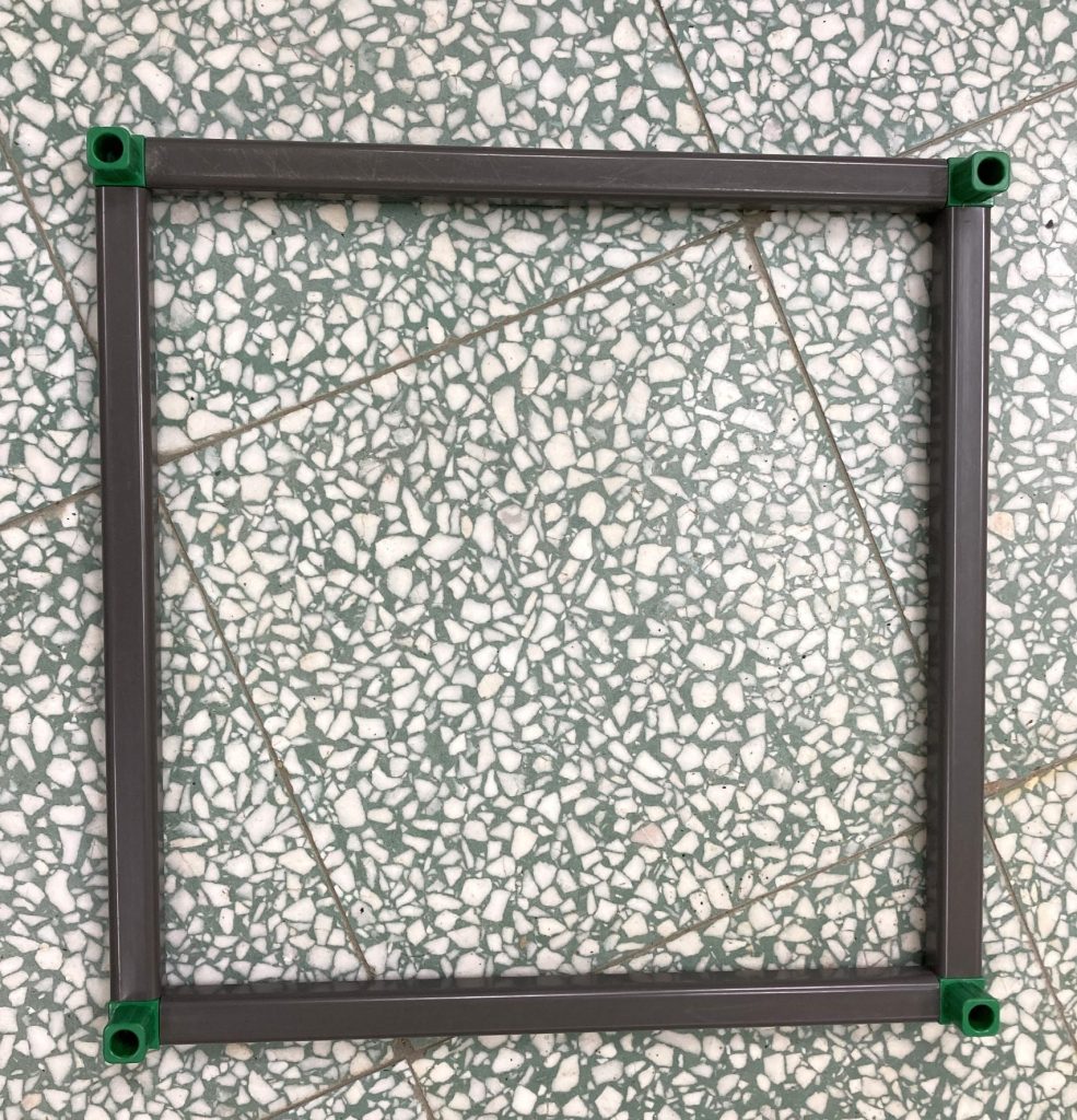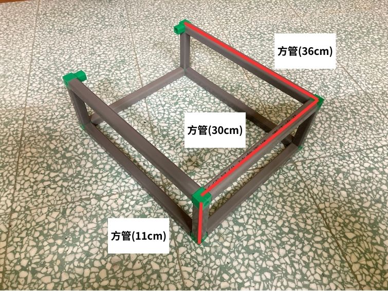 (2.2a) 將方管與三通件組裝成抽屜式外框,組裝後如下圖所示。