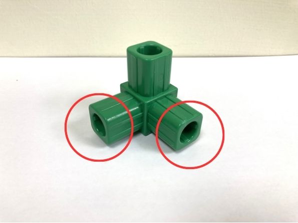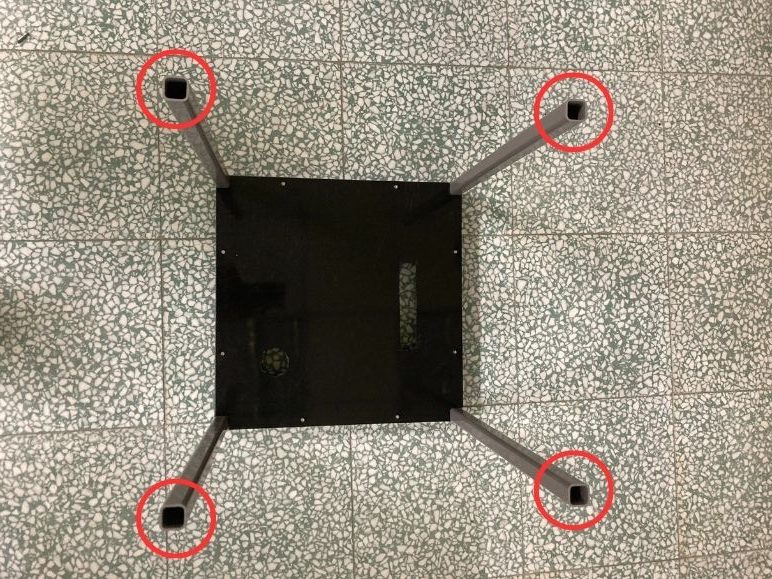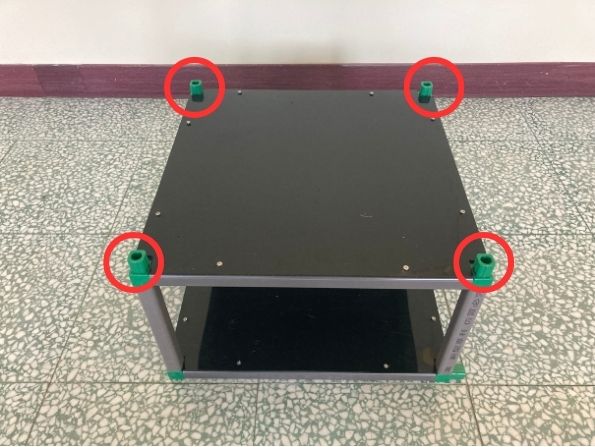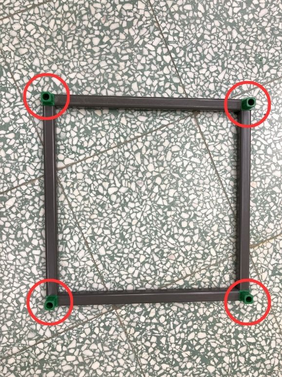 (2.1.a) 將方管分別插入紅色圓圈標示的卡榫,組合後如下圖所示