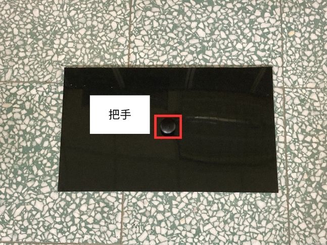 (3.3b) 於黑色板材(40.2cm*21cm*3mm)裝上把手,如下圖所示