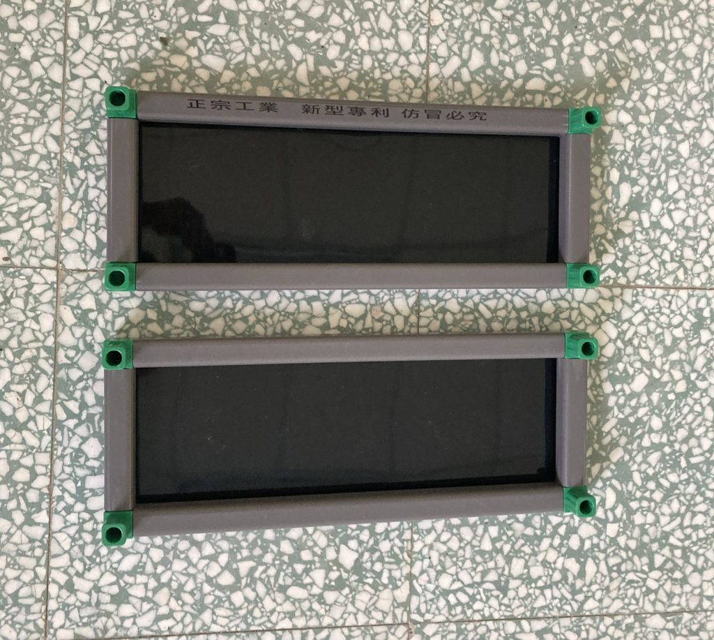(2.2b) 用電鑽將2片HDPE 黑色板材(40.2cm*15.2cm*1.5mm)用螺絲鎖在外框的兩側,組裝後如下圖所示。