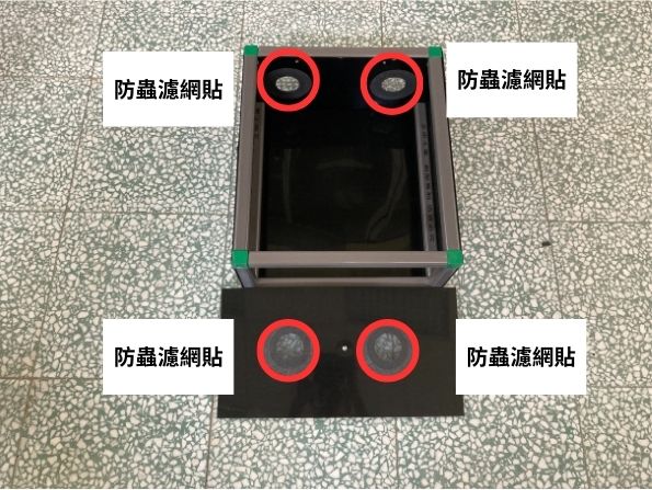 (5.b) 將防蟲濾網貼在幼蟲區外框上,組裝後如下圖所示。