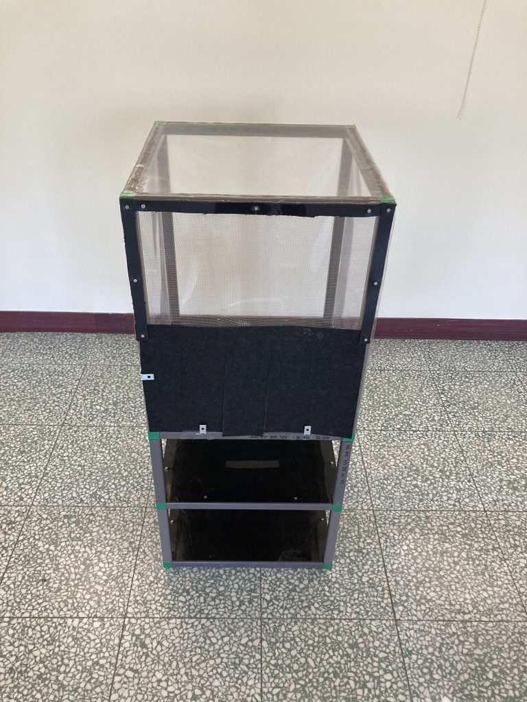 - 中層:包括中層外框、抽屜式孵化&蛹羽化外框、蟲卵孵化盆+蛹羽化區、產卵板與成蟲通道