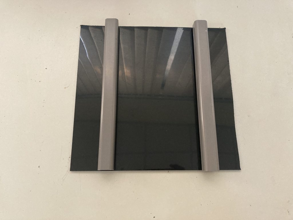 (5.a) 將把手裝在HDPE 黑色板材(40.2cm*21cm*3mm)上,組裝後如下圖所示。